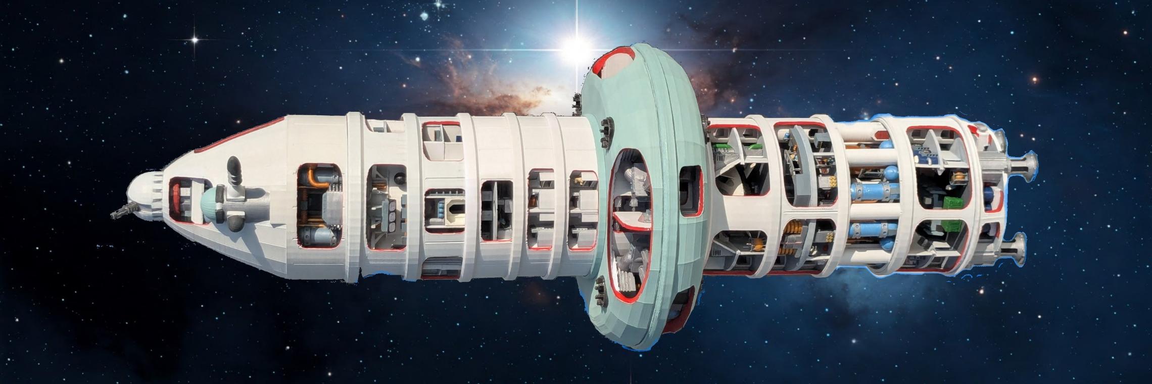 Construction of the Ukumka began in 2132 and took seven years to complete. The vessel combined both Reban and human technologies. Its overall structure featured a central engine torus inspired by human designs, while the cylindrical body reflected the use of pre-existing Reban construction methods. At its core was a Hyperjump Drive, a simpler and older form of FTL propulsion gradually being phased out on human ships in favor of the more advanced Linear Drive. However, the straightforward nature of the Hyperjump Drive made it an ideal starting point for the Rebans’ first ventures into interstellar travel.