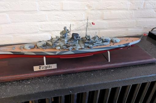 This model is a bit different than my other ones. I have not made it myself. This 1/350 Tamiya Tirpitz was build by my father in the mid 1980s, so its coming close to 40 years of age now. After he has passed away, I was looking of some room to place it, as I wanted to save it.
